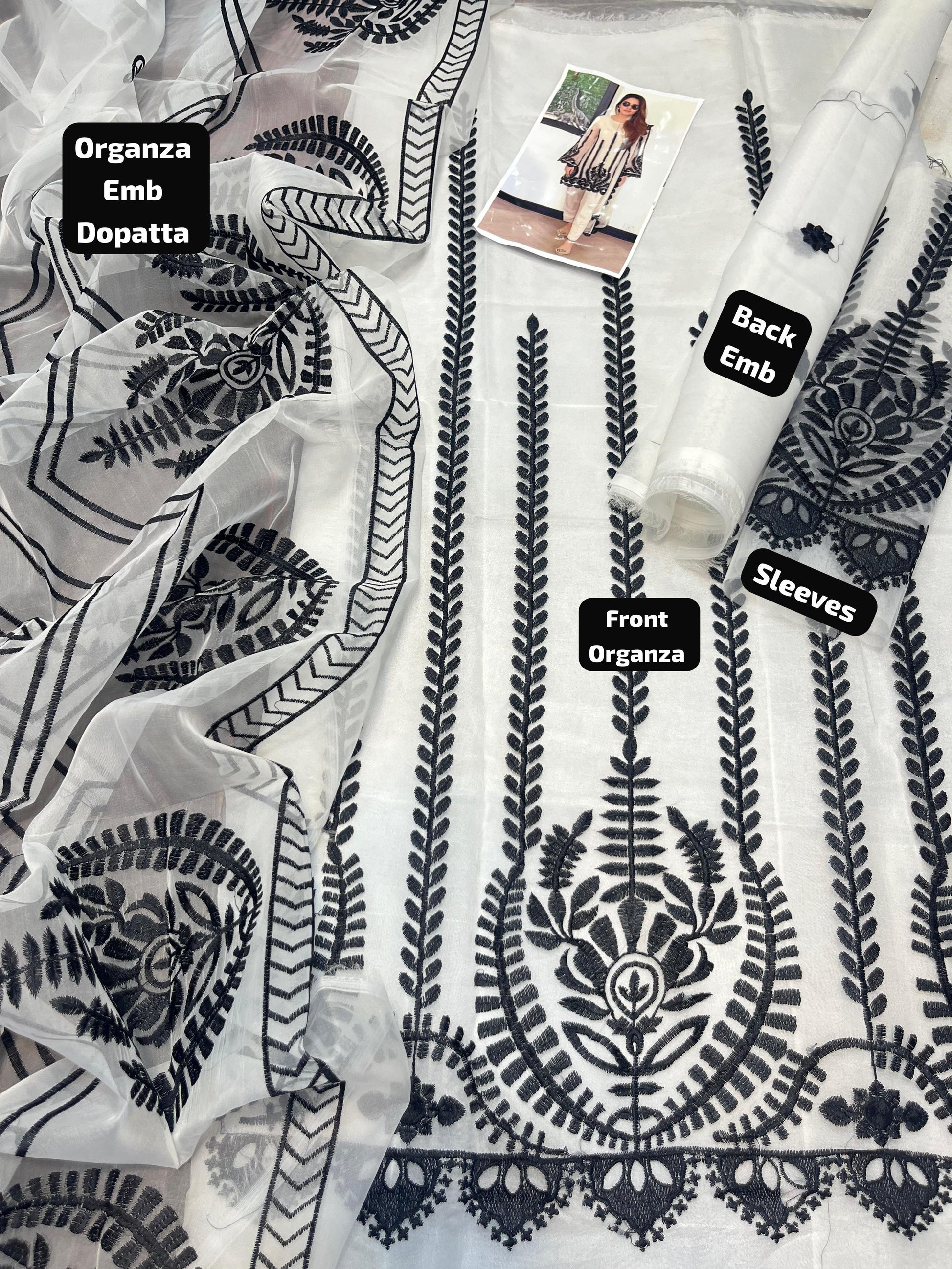 Sana safina hit collection with organza Dopaatta FABRIC ; Organza Neck Emb Sleeves Emb Slik trouser/inner Back organza sleeves border Emb Heavy work lace